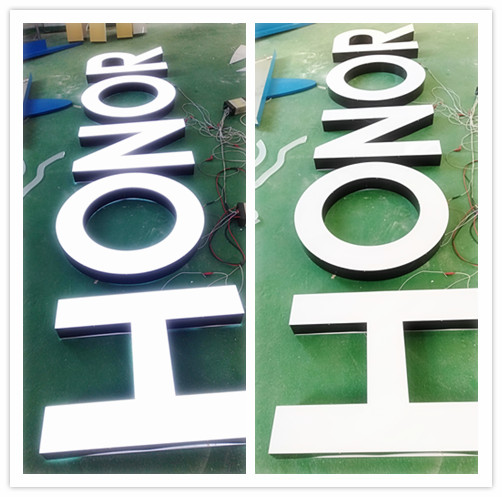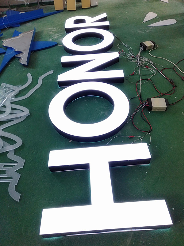 無邊發(fā)光字是指發(fā)光面板無壓邊的立體發(fā)光字,外觀和超級發(fā)光字、樹脂發(fā)光字相似。主要是以鋁邊材料來制作字殼,以亞克力作為面板粘貼而成。字殼可以噴漆,亞克力面板顏色選擇多樣,一般大小不超過1米。常用于室內外門頭招牌。