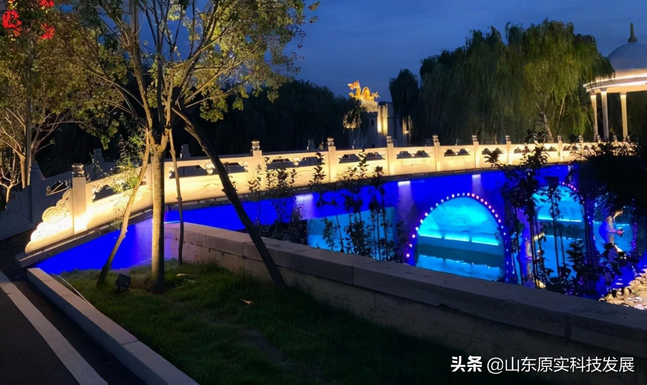 濟南舜德護理院景觀湖亮化 LED鋁板沖孔燈及投光燈